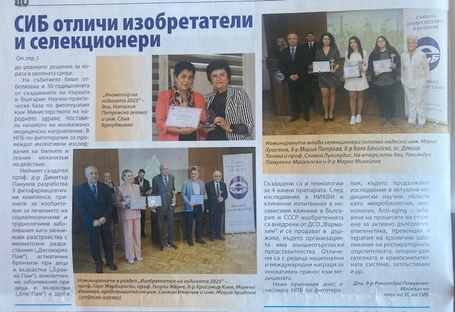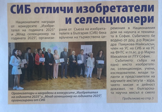 Новини ИНОВАТОР НА ГОДИНАТА-2025 ИЗОБРЕТАТЕЛ НА ГОДИНАТА-2025 МЛАД СЕЛЕКЦИОНЕР НА ГОДИНАТА-2025 Date: октомври 31, 2025Author: СИБ Споделяне: Click to share on X(Отваря се в нов прозорец) X Споделяне във Facebook(Отваря се в нов прозорец) Facebook Харесвам Зареждане...